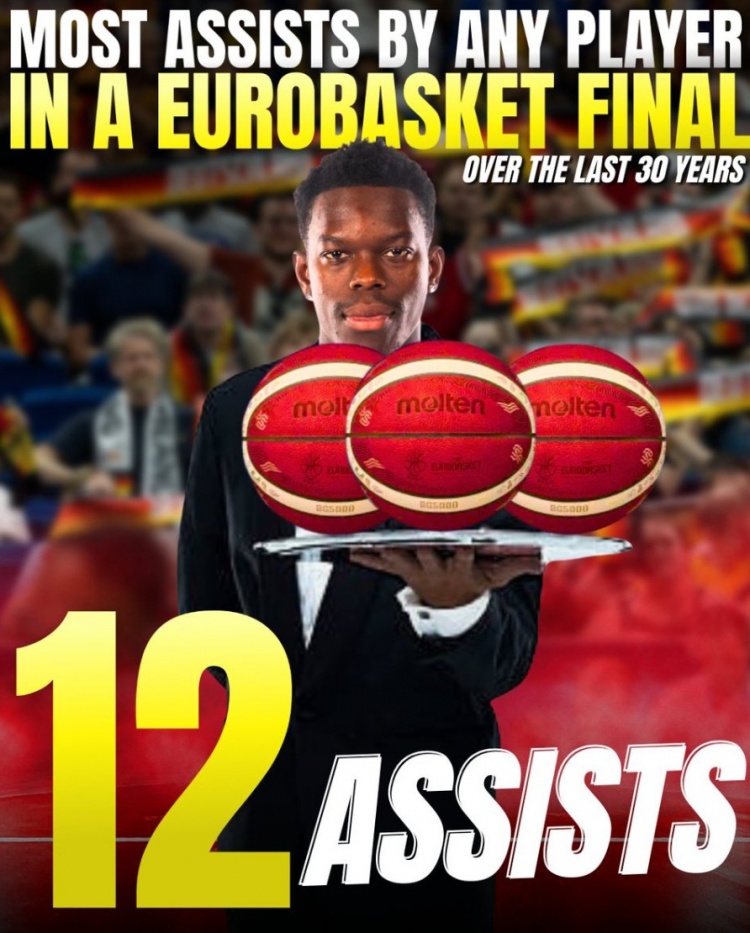 據(jù)統(tǒng)計,施羅德送出12助攻,創(chuàng)近30年來歐錦賽決賽新紀(jì)錄。