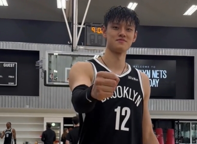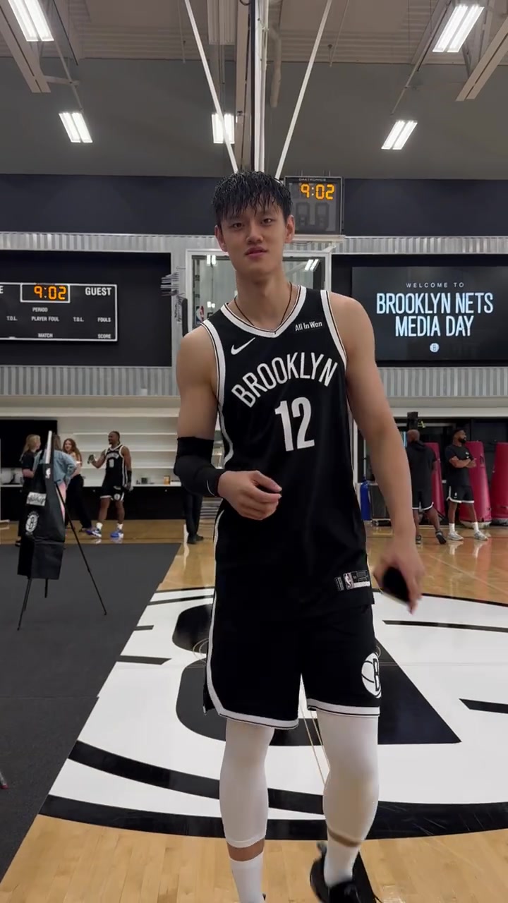 帥氣小伙!曾凡博在媒體日上已經(jīng)上身了籃網(wǎng)12號(hào)新球衣
