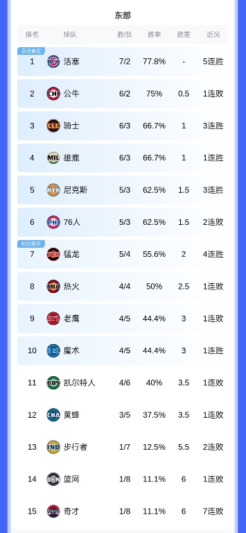 在拿下籃網之后,活塞的戰(zhàn)績來到7勝2負,超越公牛(6勝2負)升至東部榜首。