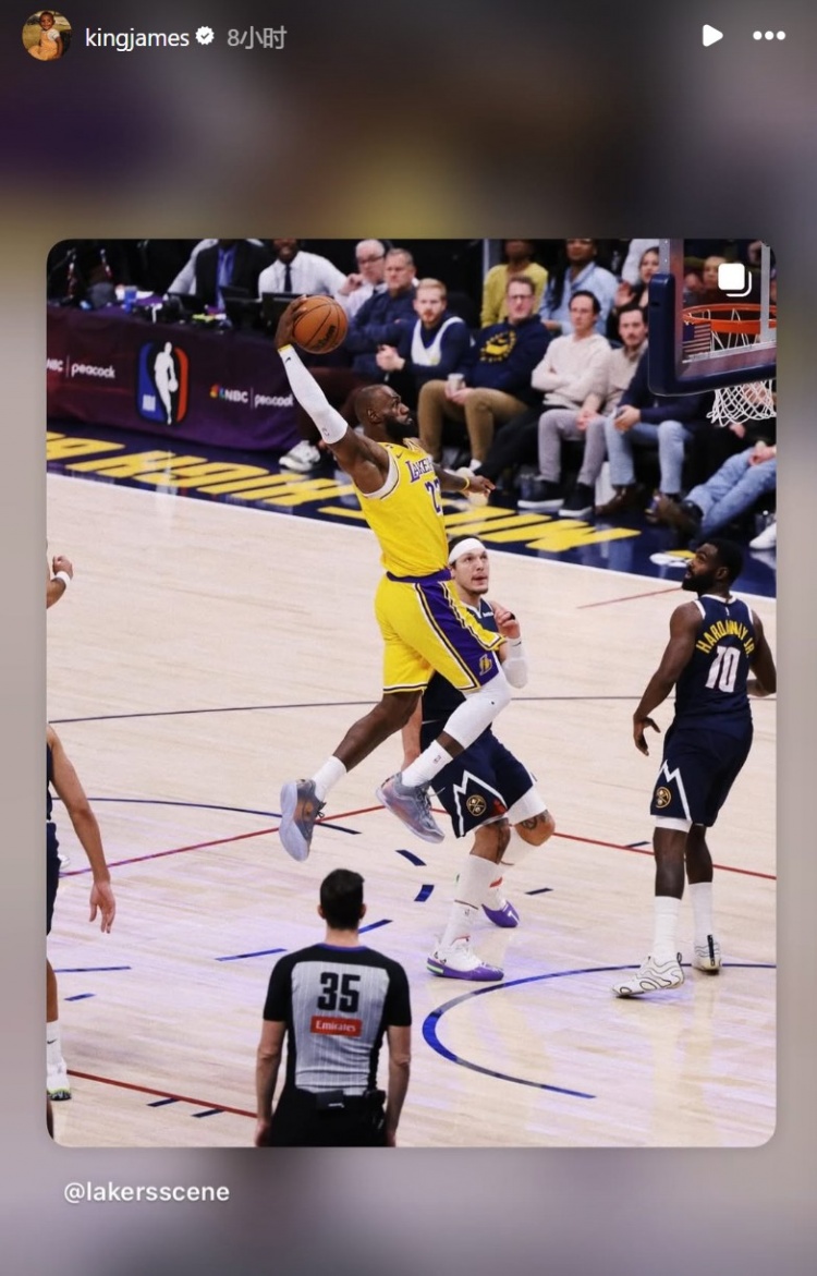 不過(guò),詹姆斯似乎沒(méi)有受到該文章的影響,他幾個(gè)小時(shí)后在INS曬出了自己在對(duì)陣掘金時(shí)的隔扣海報(bào),未配任何文字。