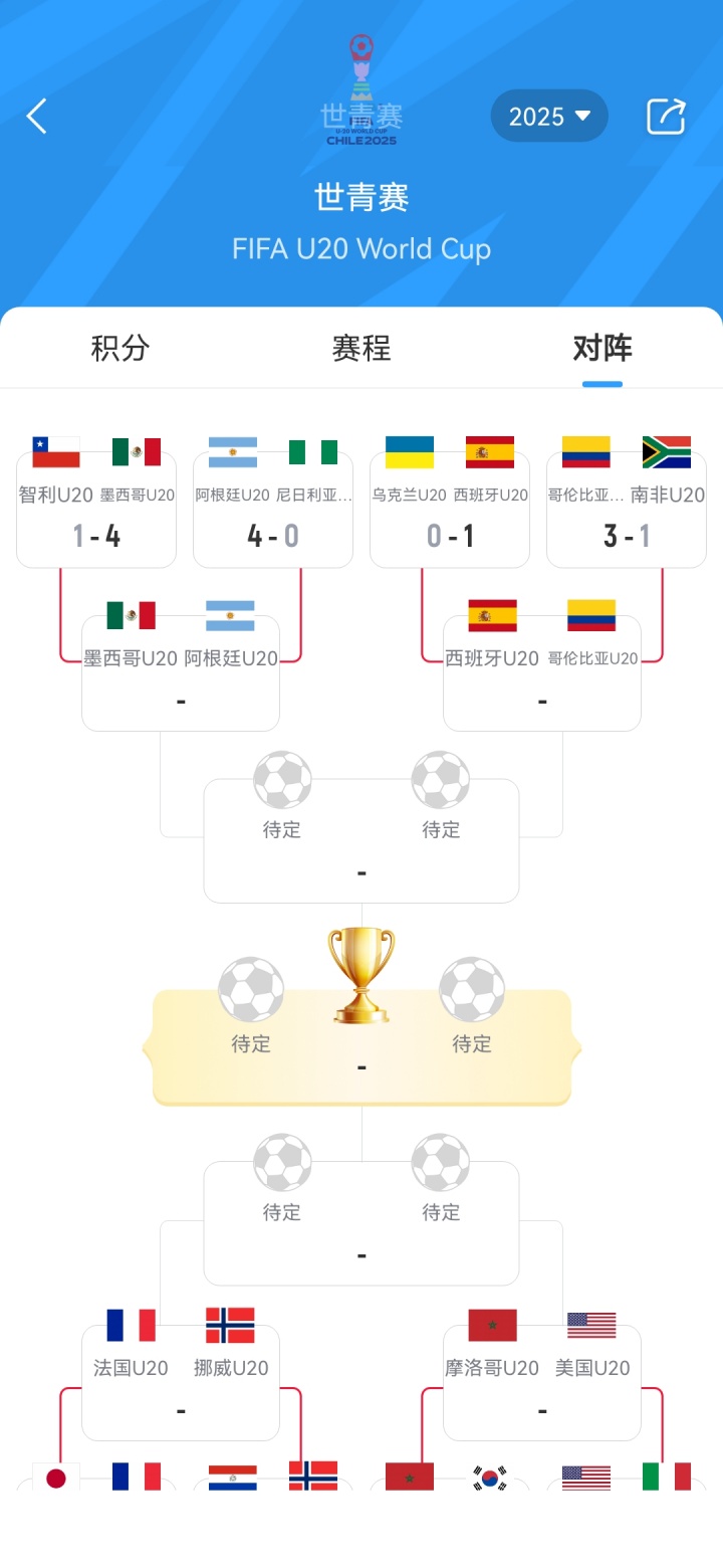 上半?yún)^(qū)墨西哥和阿根廷老熟人相遇,西班牙與哥倫比亞歐美對決;下半?yún)^(qū)法國碰上挪威,摩洛哥將對陣美國。