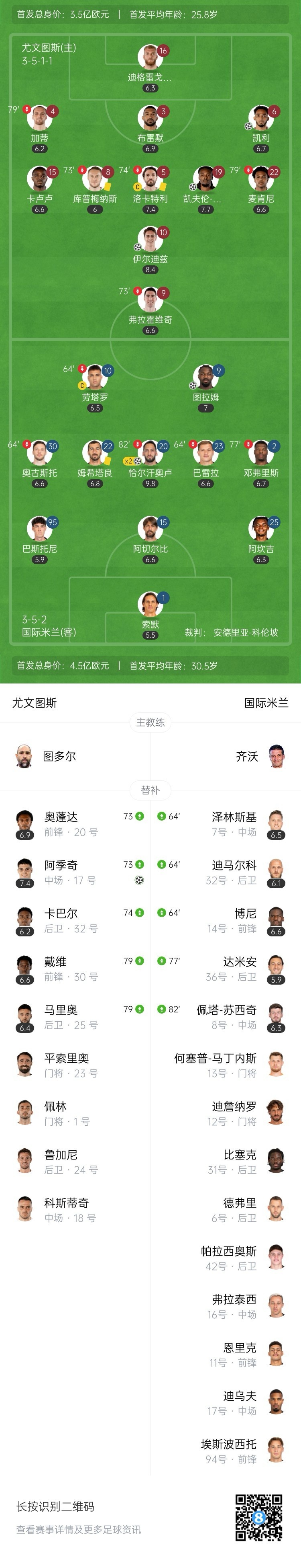 國米方面,全隊(duì)首發(fā)平均30.5歲,基本都是老將。進(jìn)球的馬庫斯-圖拉姆28歲,恰爾汗奧盧31歲。