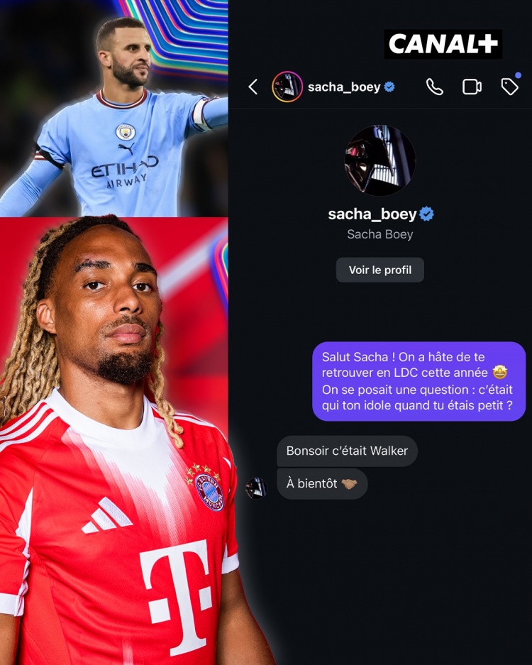 9月16日訊 法國媒體CANAL+詢問博伊的兒時偶像,他表示是沃克。