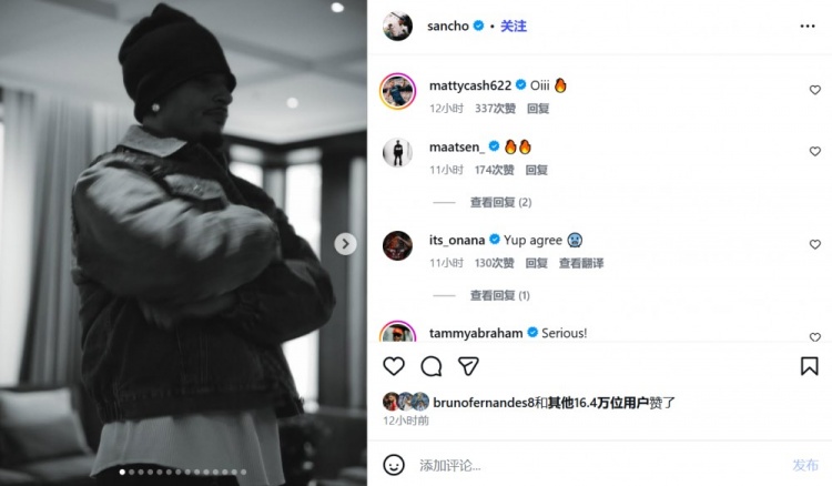 根據(jù)曼晚的報(bào)道,桑喬的前曼聯(lián)隊(duì)友拉什福德、B費(fèi)以及馬拉西亞點(diǎn)贊了這個帖子,現(xiàn)維拉隊(duì)友阿馬杜·奧納納、卡什以及馬特森則發(fā)表了評論。