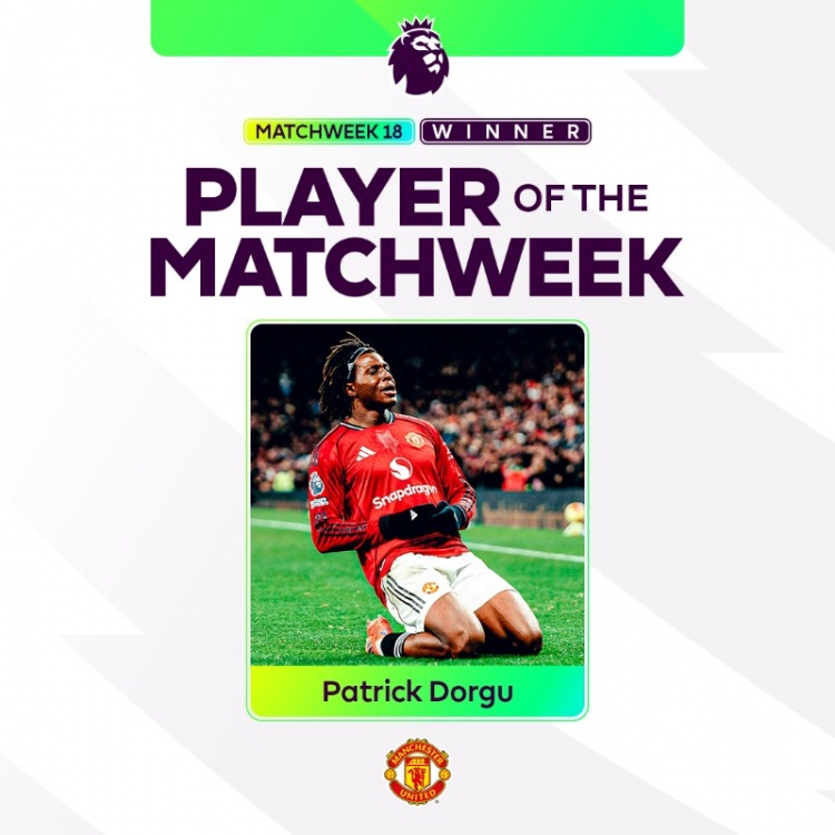 12月30日訊 英超官方宣布,曼聯(lián)飛翼多爾古當(dāng)選本輪英超聯(lián)賽最佳球員。