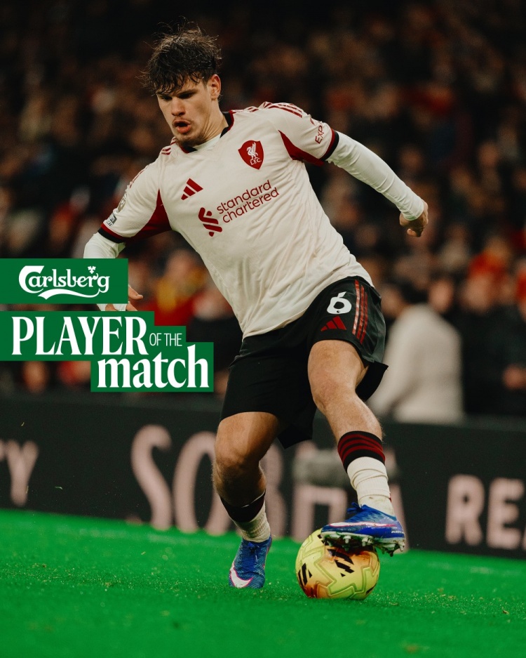 1月9日訊 2025-26賽季英超第 21輪一場焦點(diǎn)戰(zhàn),利物浦客場 0-0戰(zhàn)平阿森納。賽后,凱爾凱茲當(dāng)選紅軍隊(duì)內(nèi)最佳球員。