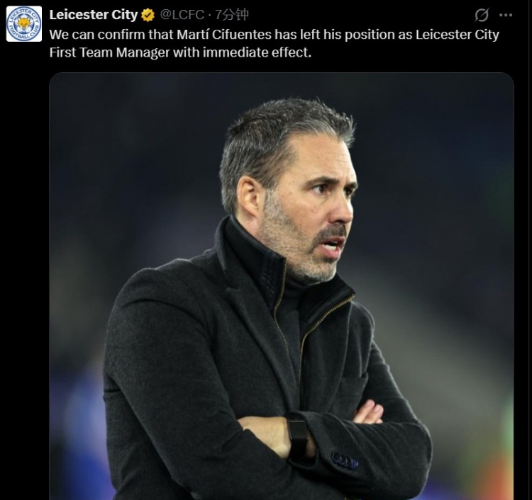 官方寫(xiě)道:“馬蒂·西富恩特斯于2025年7月接手球隊(duì)。萊斯特城足球俱樂(lè)部的每一個(gè)人都對(duì)他在此期間表現(xiàn)出的專(zhuān)業(yè)精神和奉獻(xiàn)精神表示感謝?!?/p>