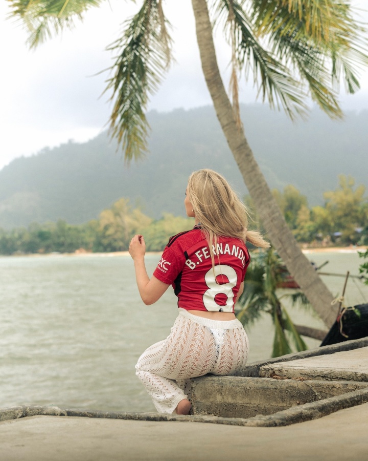 Therese Gudmundsen在Ins上擁有超過30萬粉絲,平時她經(jīng)常身穿曼聯(lián)球衣拍攝寫真。在最新的帖子中,她發(fā)布了自己在斯里蘭卡度假的照片,她身穿比基尼躺在沙灘上擺pose拍照,還曬出一張自己享用水果沙拉的照片。