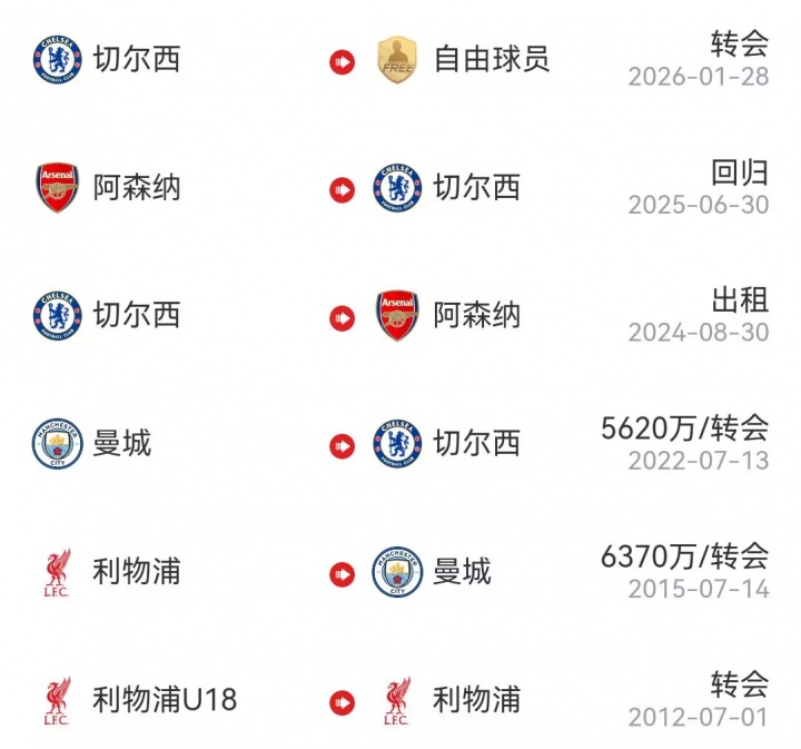 此前斯特林一直在英超效力,先后效力多家豪門:利物浦(含青訓(xùn))→曼城→切爾西→阿森納。