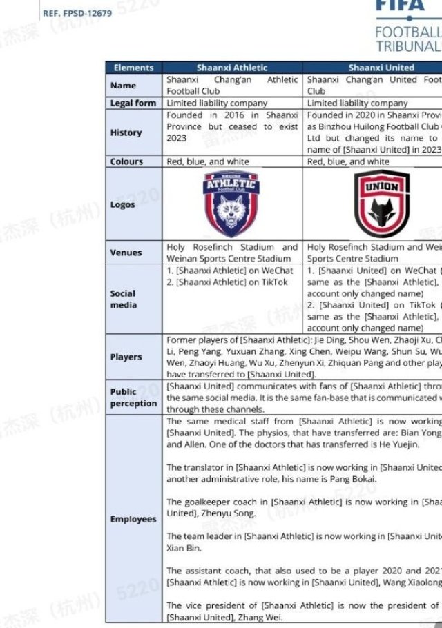 陜西聯(lián)合在應(yīng)對訴訟時提出:俱樂部2020年就已經(jīng)成立,并非是2023年才成立;前身是彬州輝龍,與長安競技也不是同一個法人實體。兩家俱樂部隊徽完全不同,長安競技俱樂部也從未使用過“聯(lián)合”的名字;使用原長安競技的球員,僅僅是出于競技層面的需要。而且長安競技尚未破產(chǎn),球員仍可對其起訴,而不是來起訴陜西聯(lián)合。