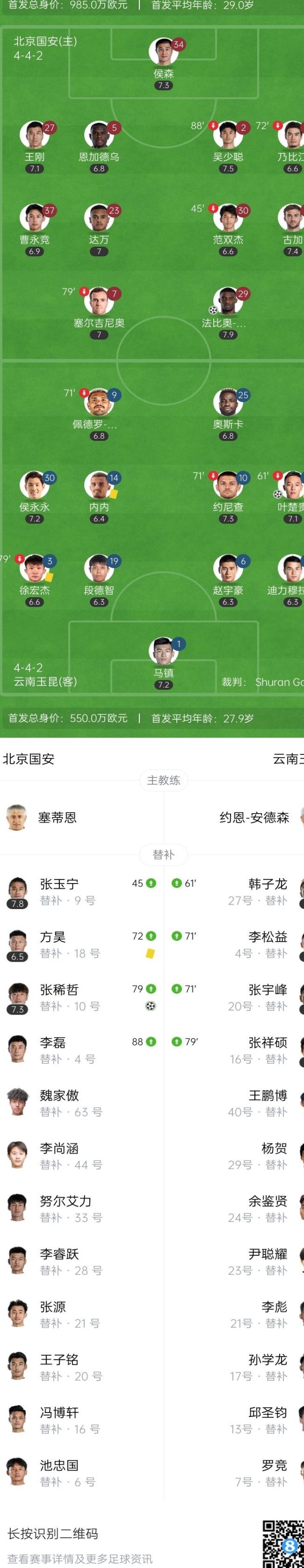 第81分鐘,張玉寧禁區(qū)內(nèi)倒地,主裁判判罰點(diǎn)球!張稀哲主罰點(diǎn)球命中!北京國安2-1反超云南玉昆↓