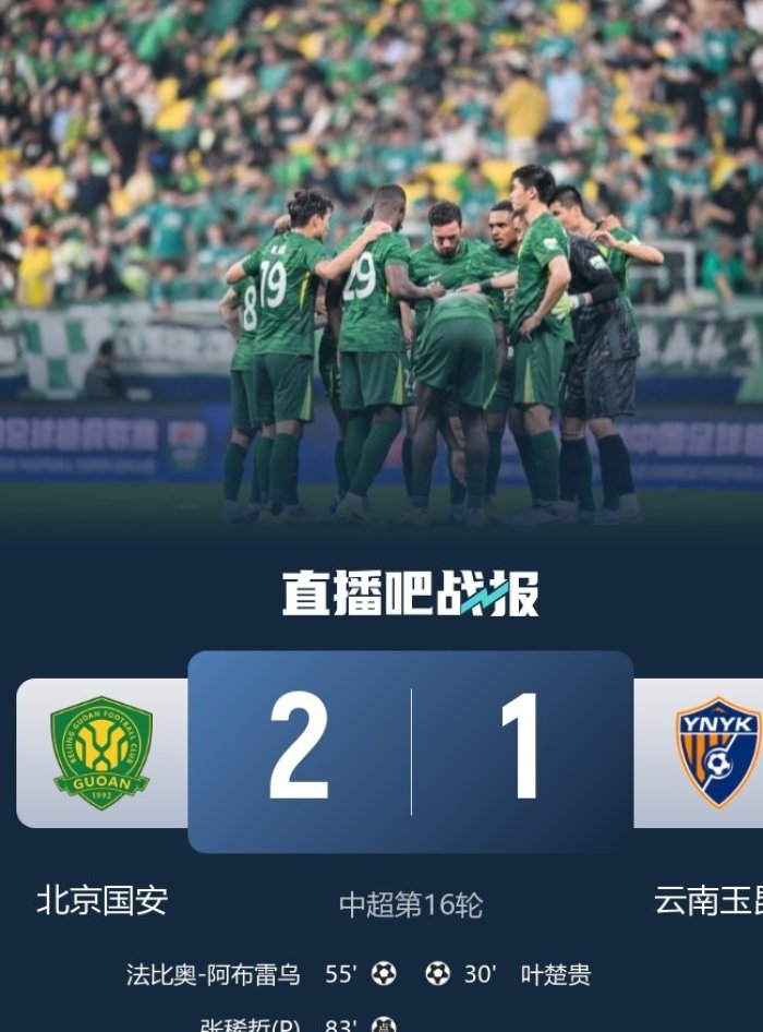6月30日訊 北京時(shí)間19:35,中超第16輪北京國安vs云南玉昆,比賽在北京工人體育場打響!上半場,葉楚貴幫助客場作戰(zhàn)的云南玉昆取得領(lǐng)先!法比奧禁區(qū)倒地獲得點(diǎn)球,隨后被VAR取消!下半場,張玉寧頭球擺渡,阿布雷烏扳平比分!張玉寧隨后又制造點(diǎn)球!張稀哲主罰命中!