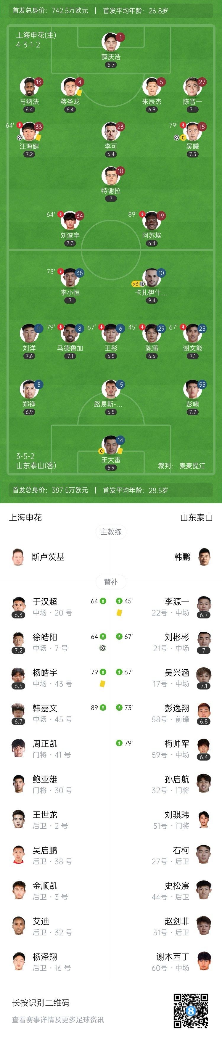 全場比賽結(jié)束,申花3-3戰(zhàn)平泰山。