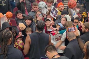 瞧瞧這人氣!哈登迎來騎士主場首秀,賽前給一眾小球迷簽名
