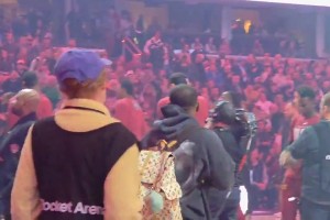 哈登作為騎士球員,首次在主場(chǎng)亮相!登場(chǎng)時(shí),現(xiàn)場(chǎng)球迷一片歡呼!