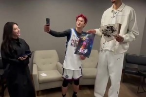身高差距43公分!王鶴棣和文班亞馬合影,美娜在一旁看著