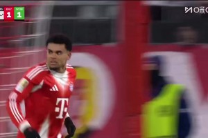 拜仁再次領(lǐng)先!奧利塞晃開防守送傳中,迪亞斯頭球破門