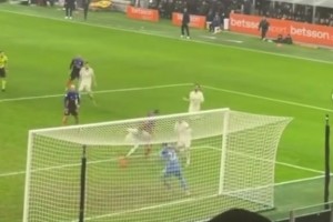 刺激啊!實(shí)拍:皮奧掛著對手頭槌完成破門,瞬間引爆梅阿查