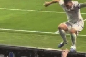 實拍勞塔羅破門后慶祝!網(wǎng)友打趣:薩索羅主場圍欄還是不夠高