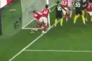 看著就疼本·懷特想繞后,被庫(kù)尼亞推向門柱撞到手臂