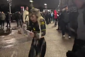 活該?曼聯(lián)女網(wǎng)紅舉不雅標語拍視頻,被路過的西漢姆球迷潑啤酒